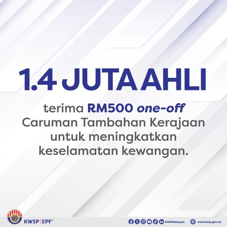 1.4 Juta Ahli KWSP Terima RM500 One-Off Caruman Tambahan