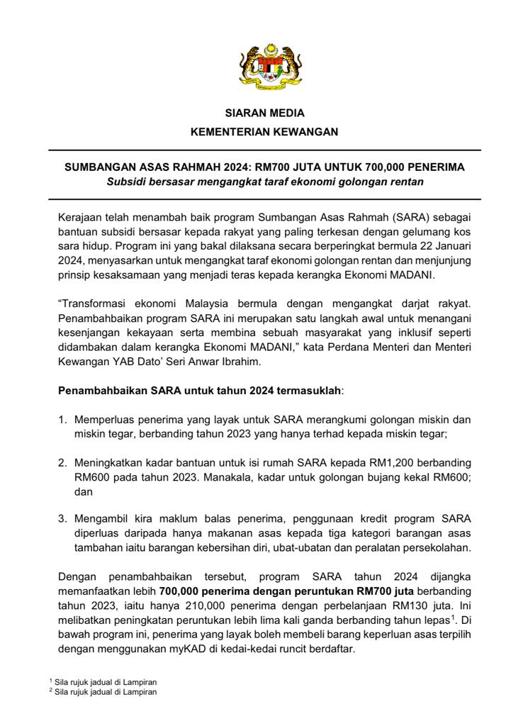 MySARA 2024 : Berikut Kategori Penerima Bantuan RM600 & RM1200